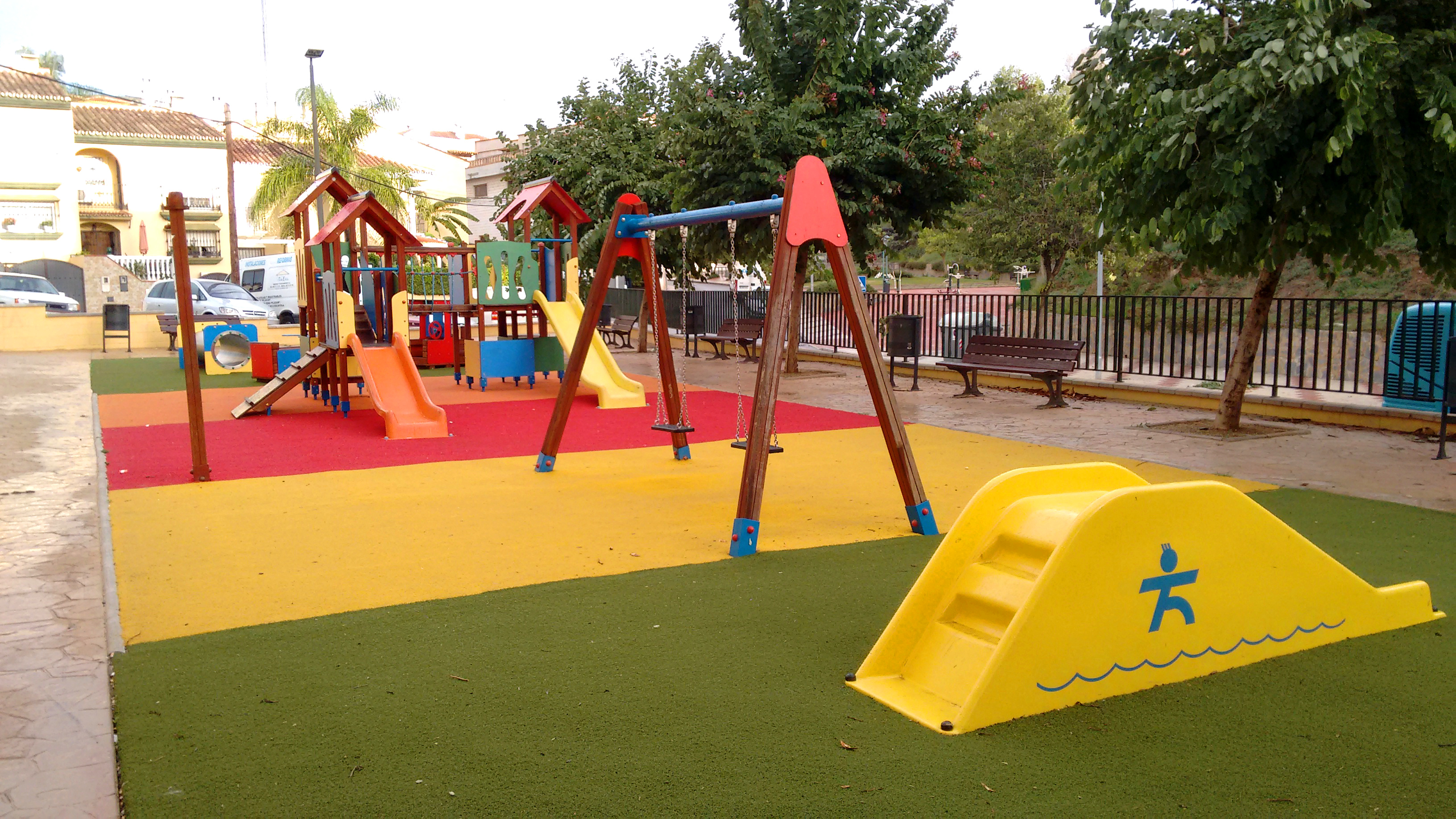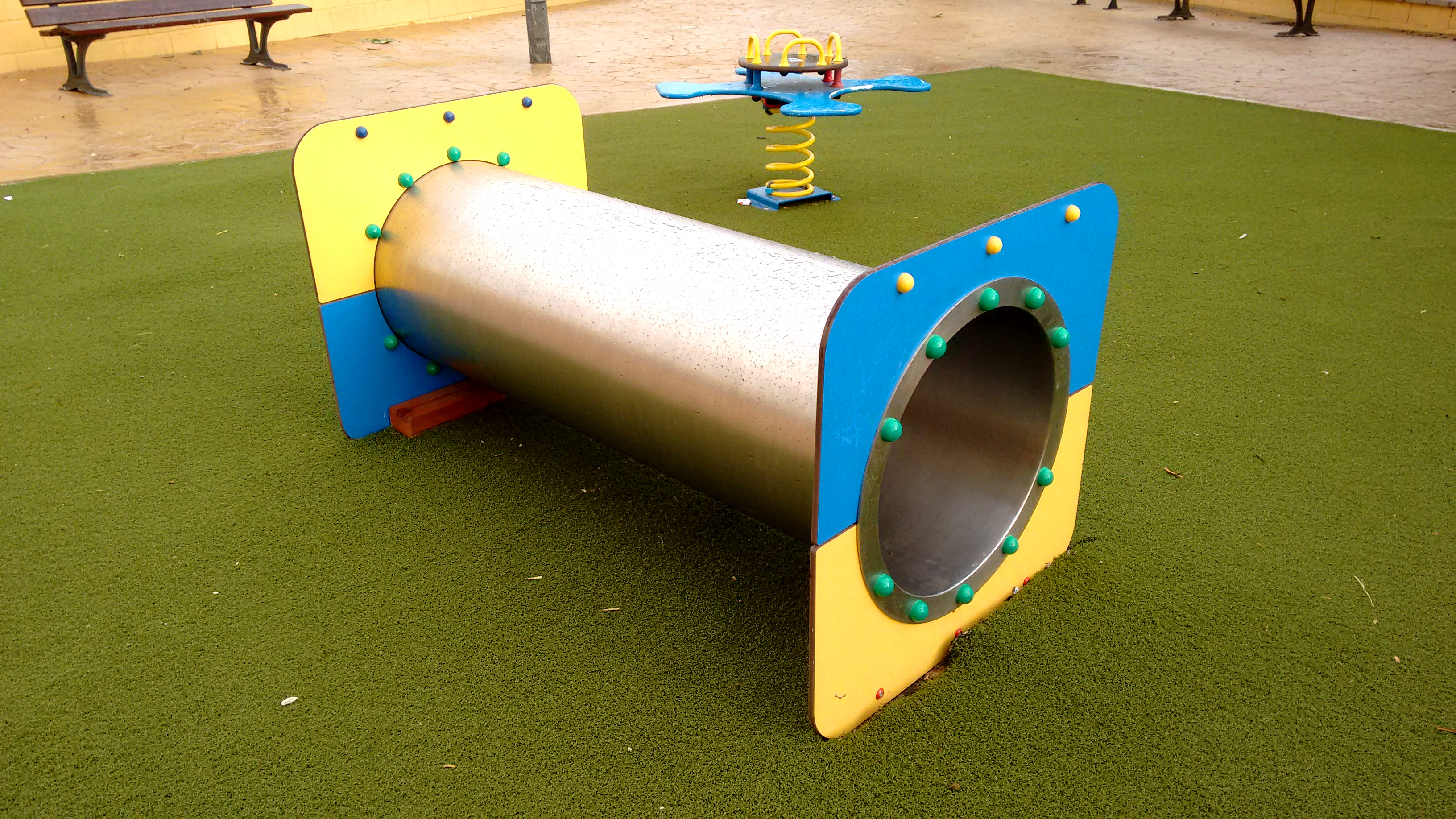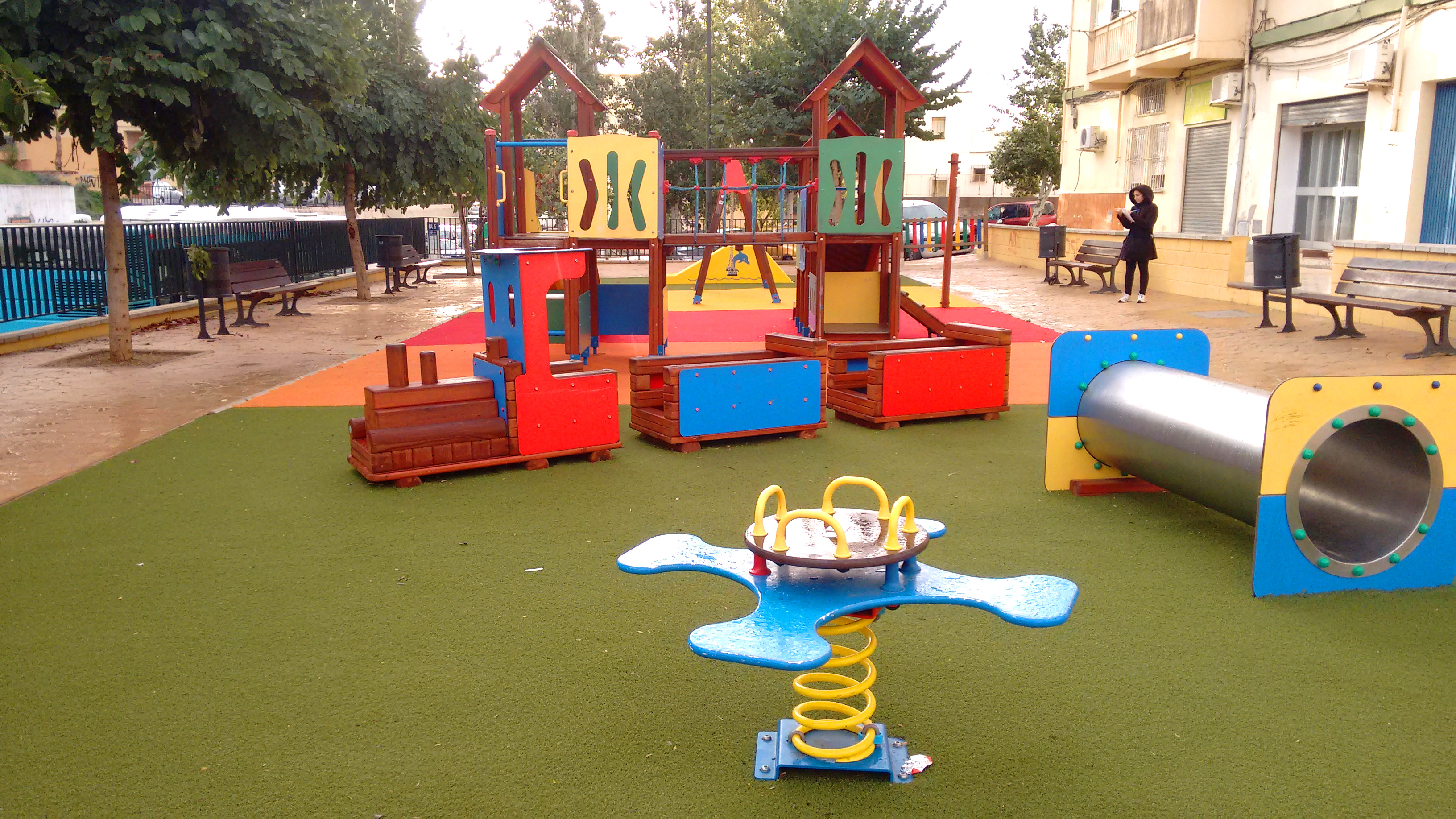 Espacio reservado para el uso y disfrute infantil. Tiene capacidad para múltiples usuarios debido a que cuenta con una zona con varios elementos de juego de pequeño, mediano y gran tamaño a fin de que los niños puedan divertirse, tanto de manera individual como con otros niños. Está provisto de suelo de césped artificial, que asegura la protección de los más pequeños. En total, los elementos de juego que dispone son: - 1 Tobogán - 1 Columpio doble - 1 Multijuego - 1 Tren - 1 Tubo - 1 Muelle múltiple