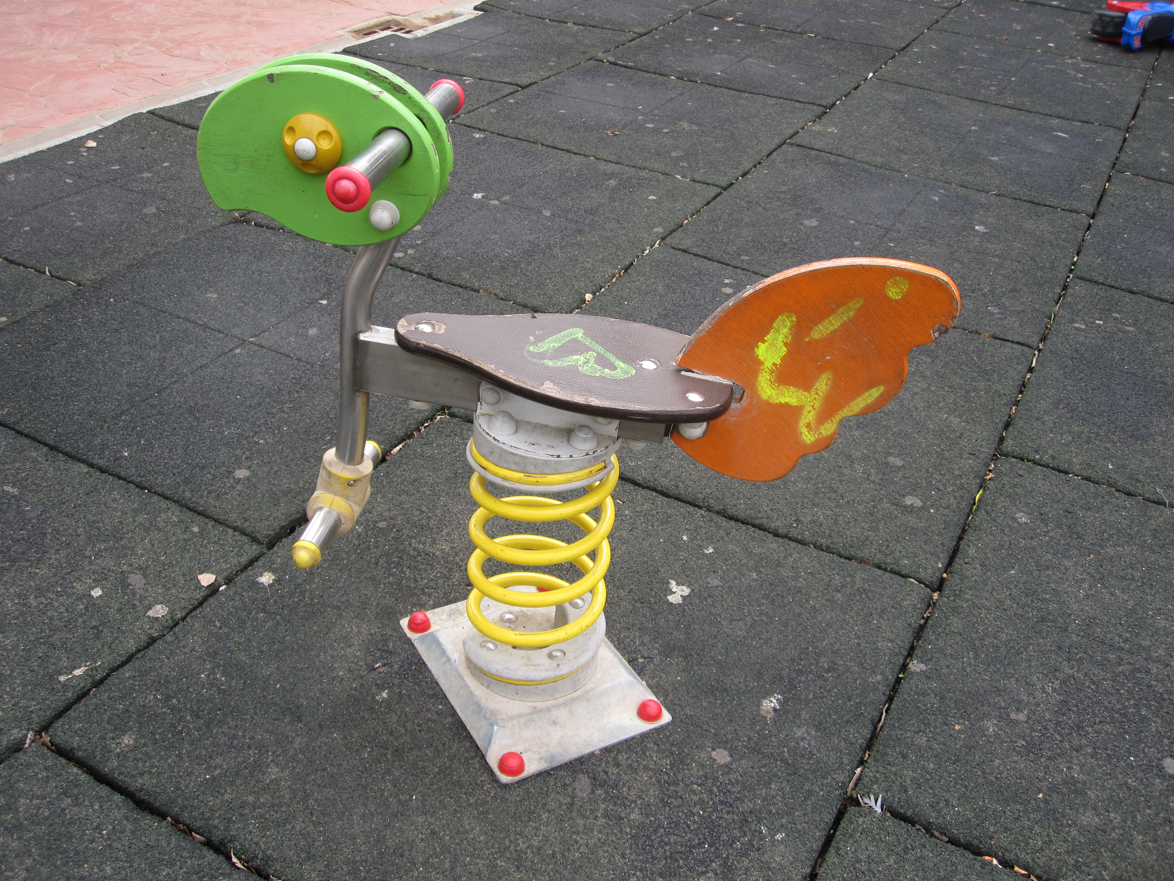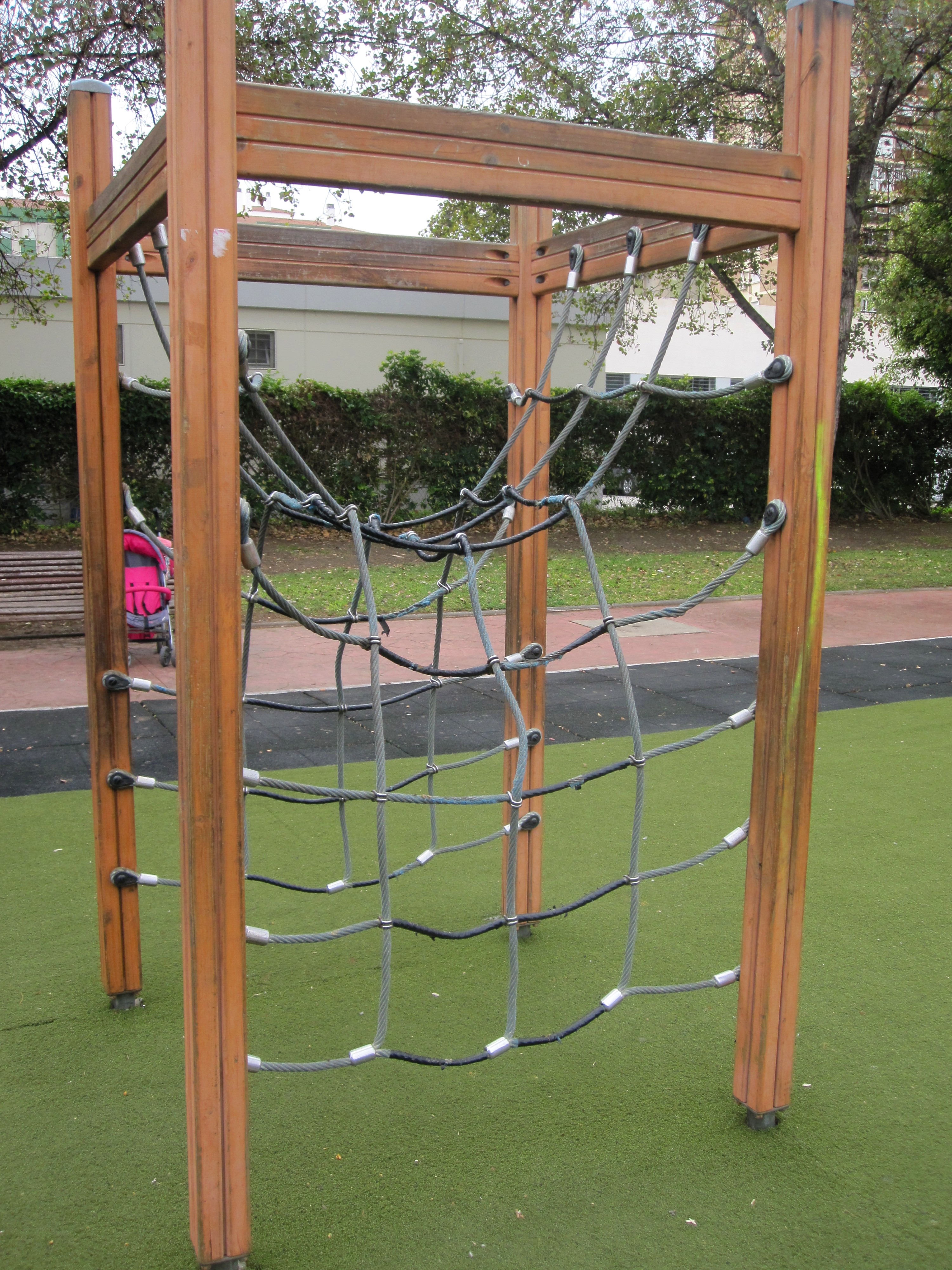 Espacio reservado para el uso y disfrute infantil. Tiene capacidad para múltiples usuarios debido a que cuenta con una zona con varios elementos de juego de pequeño, mediano y gran tamaño a fin de que los niños puedan divertirse, tanto de manera individual como con otros niños. Está provisto de suelo de loseta de caucho continua y césped artificial, que asegura la protección de los más pequeños. En total, los elementos de juego que dispone son: - 1 Muelle simple - 2 Columpios de 2 plazas - 1 Trepador - 1 Multijuegos