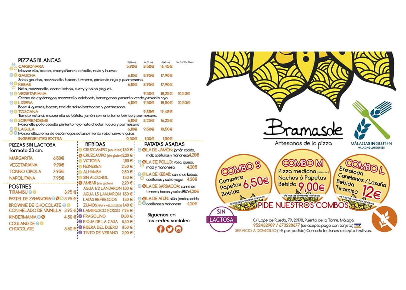 Bramasole Pizzerias es un establecimiento especializado en Pizza elaborada de forma artesanal con ingredientes de calidad, un producto que NO se puede identificar como comida rápida. Como valor añadido a esta forma artesana de trabajar tenemos una carta especial SIN GLUTEN, dirigida a este sector de la población, cada vez más numeroso y al que resulta difícil ofrecer una cocina de calidad y a buen precio, sobre todo en nuestro plato estrella ¿LA PIZZA¿. Nuestro menú dispone de dos tipos de ensaladas, siete tipos diferentes de pizza artesana, berenjenas a la parmesana, lasaña de verduras, dos postres y una marca de cerveza. Bramasole, esta situada en el Puerto de la Torre, disponemos de un local para unos treinta comensales, con una bonita decoración inspirada en la Toscana Italiana. Tenemos un Servicio a domicilio que abarca la zona del puerto de la Torre, Teatinos, Soliva, Atabal, Colonia Santa Ines y Zona de Carlos Haya. Este servicio es rápido y eficaz, no tardando más de 30 minuntos a ningún destino.