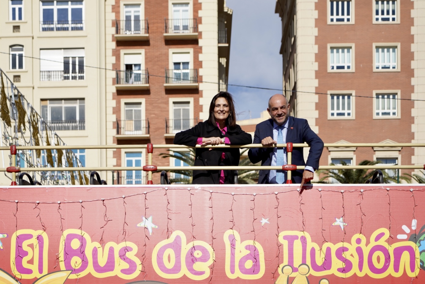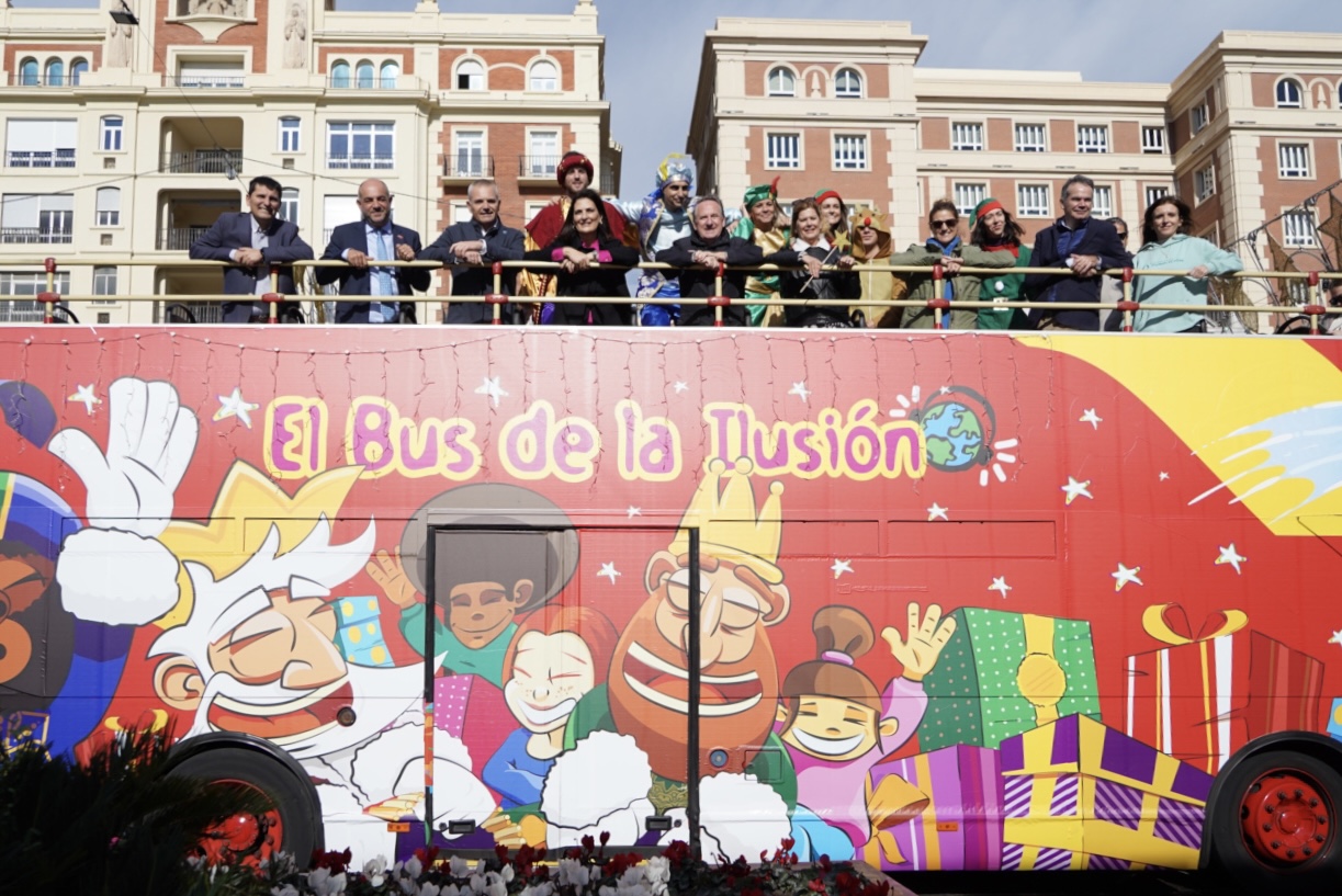La concejala delegada de Movilidad, Trinidad Hernández, junto al director de operaciones de City Sightseeing Málaga, Luis Miguel Labrado, ha asistido hoy a la presentación del ‘Bus de la Ilusión’, que ofrecerá viajes solidarios por la ciudad por un precio reducido de 3 euros que serán donados íntegramente a Ly Company y la Fundación Pequeño Deseo. El ‘Bus de la Ilusión’, una iniciativa que promueve City Sightseeing Málaga, recorrerá la ciudad con salidas a las 16.30, 17.30 y 18.30 horas para realizar el recorrido habitual del bus turístico entre el 22 de diciembre y el 4 de enero.