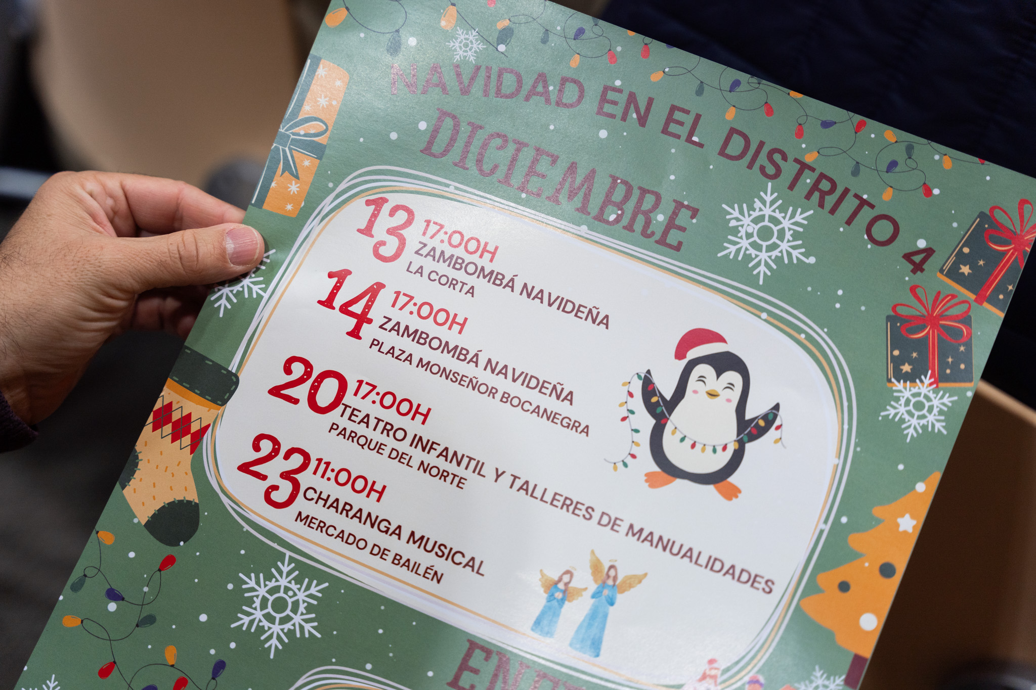 Las fiestas navideñas en el distrito Bailén-Miraflores incluyen una variada programación con actividades para todos los públicos 12/12/2024 Imagen Música navideña, fiestas infantiles y actividades de dinamización del comercio de barrio, entre los eventos programados La cabalgata de Reyes Magos pondrá el broche final de las fiestas la tarde del 4 de enero Documentos COMUNICADO.pdf 430,01 KB kb Galería de imágenes
