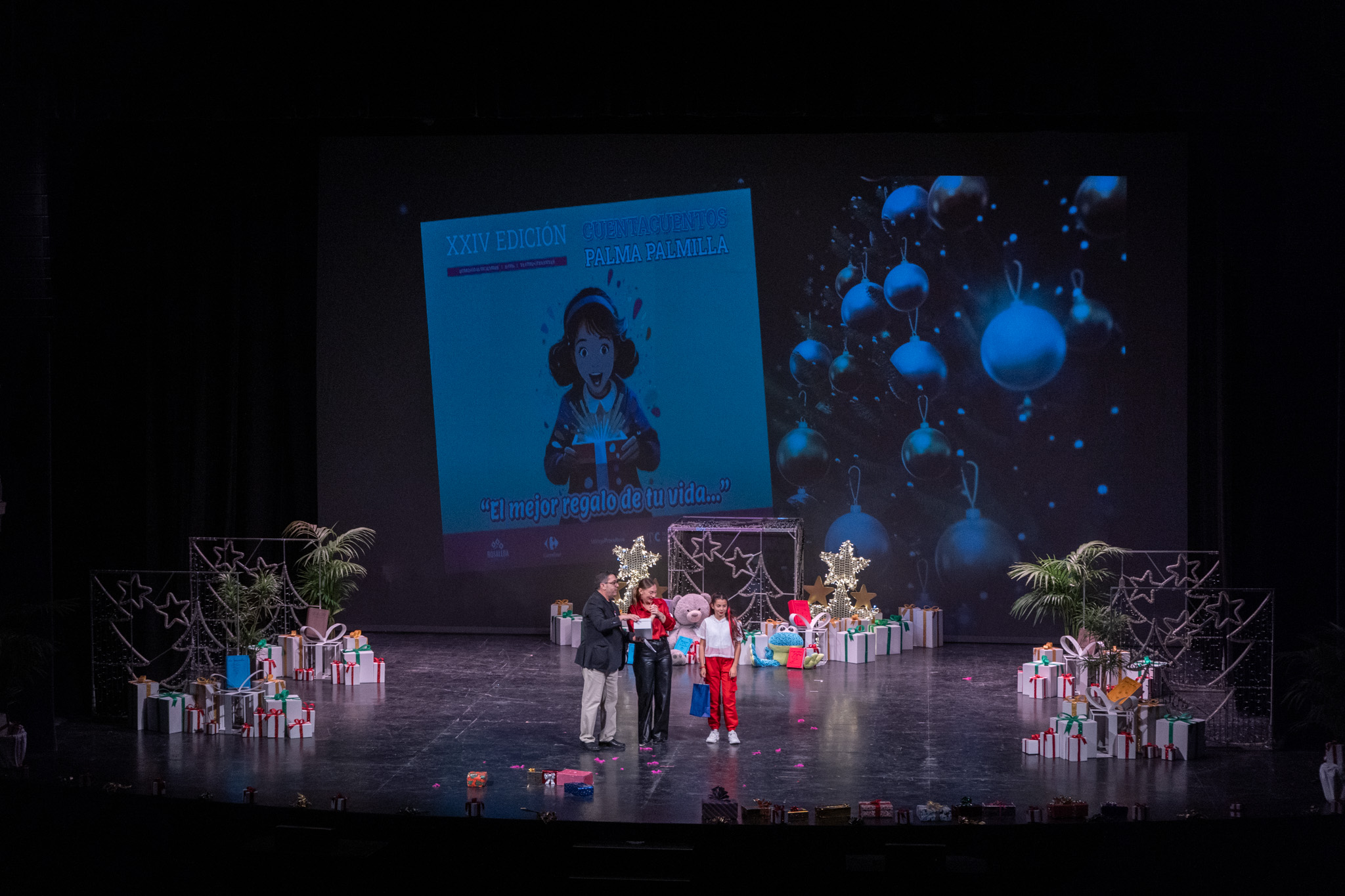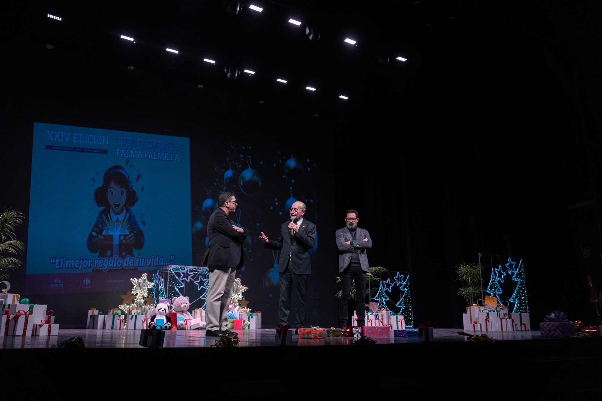 El alcalde de Málaga, Francisco de la Torre, junto al concejal delegado de Palma-Palmilla, Francisco Pomares, ha asistido esta mañana a la tradicional gala de Cuentacuentos que se ha celebrado en el Teatro Cervantes y que este año alcanza su 24 edición. La entrada ha tenido un precio de seis euros y lo recaudado se destina a la compra de juguetes para familias en situación de vulnerabilidad. Bajo el título ‘El mejor regalo de tu vida…’ la gala ha contado con las actuaciones de La Carpa Teatro, Ballet Enrique Vicent, Ballet Nueva Luna, Ballet Jessica Domínguez, centro de actividades Ginkana y centro de danza Spoilers.
