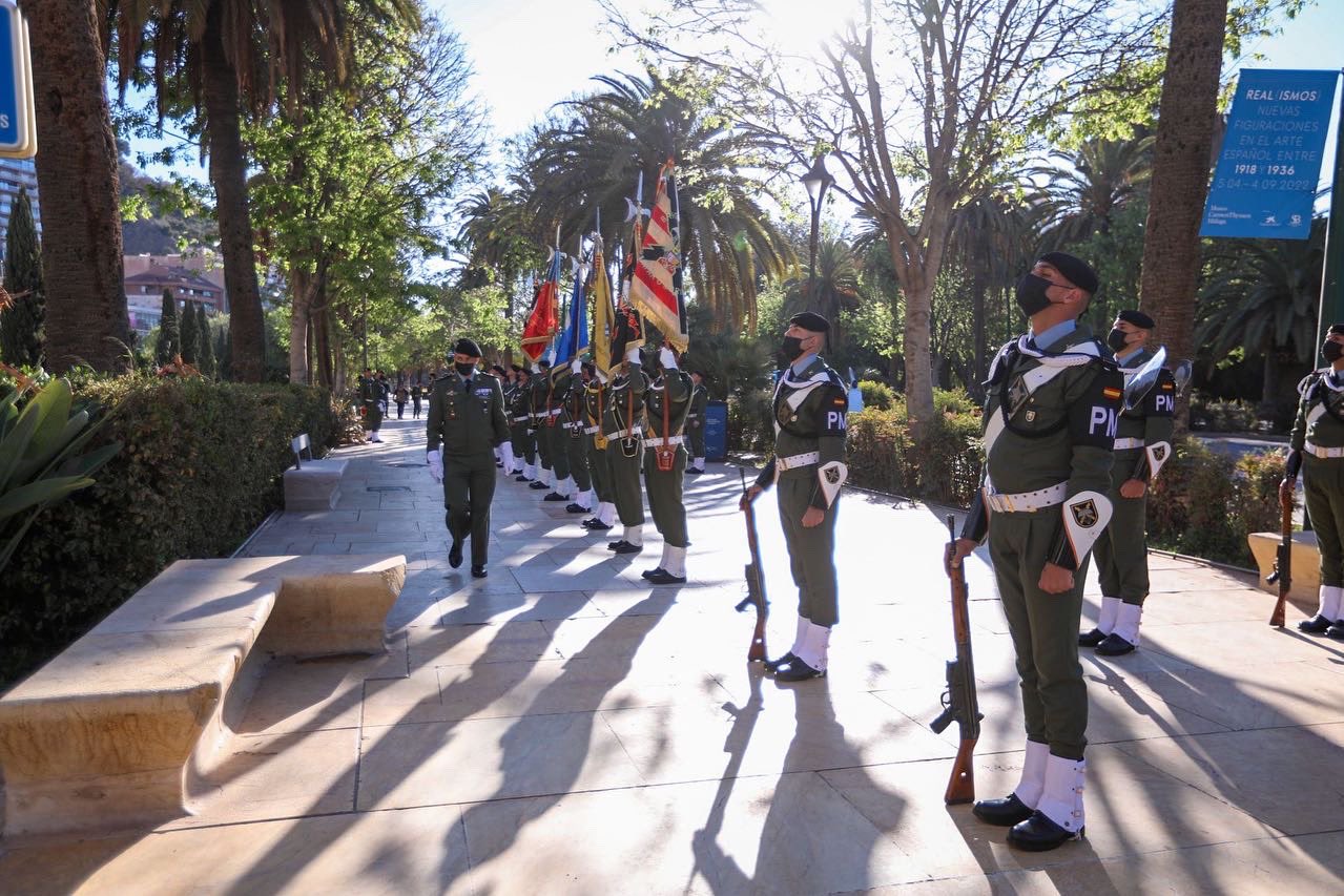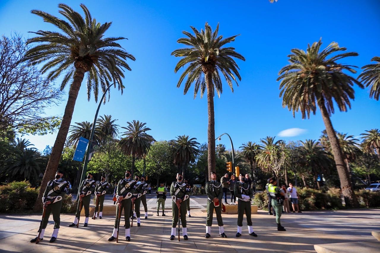 El desfile de las tropas se ha iniciado en la puerta del Ayuntamiento en dirección a la Parroquia de San Juan para realizar el Traslado del Santísimo Cristo de Ánimas de Ciegos de La Primitiva Hermandad Sacramental y Reales Cofradías Fusionadas de San Juan de Málaga, a su trono procesional.