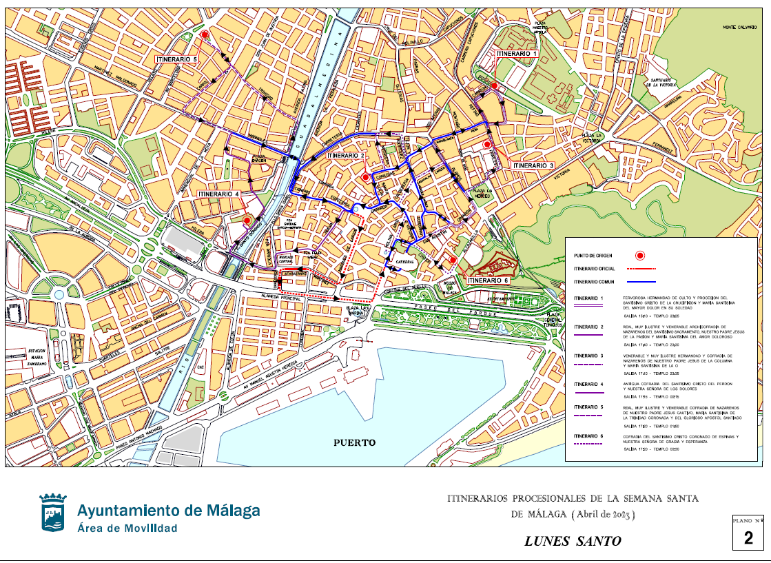 ITINERARIOS PROCESIONALES: LUNES SANTO 1/4/2023 Imagen Información sobre los recorridos de las procesiones de las cofradías en el Lunes Santo Documentos PLANO PROCESIONES LUNES SANTO.pdf 546,58 KB kb