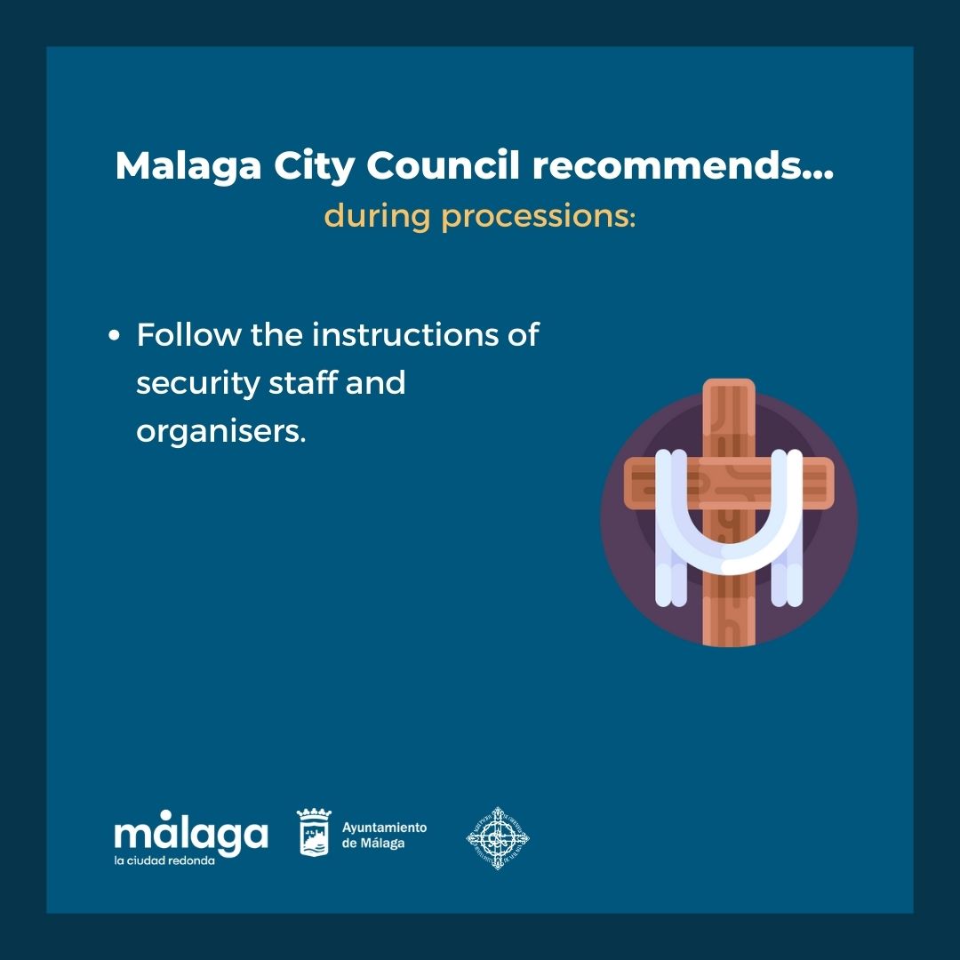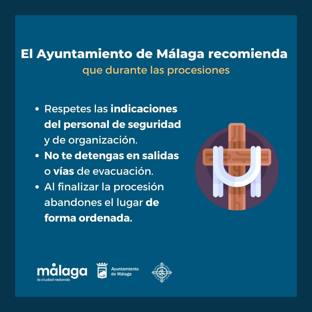 RECOMENDACIONES DEL AYUNTAMIENTO DE MÁLAGA PARA SEMANA SANTA (1) 23/3/2024 Imagen Para antes de cada desfile procesional y durante las procesiones, atención a los menores, y situaciones de emergencia Galería de imágenes