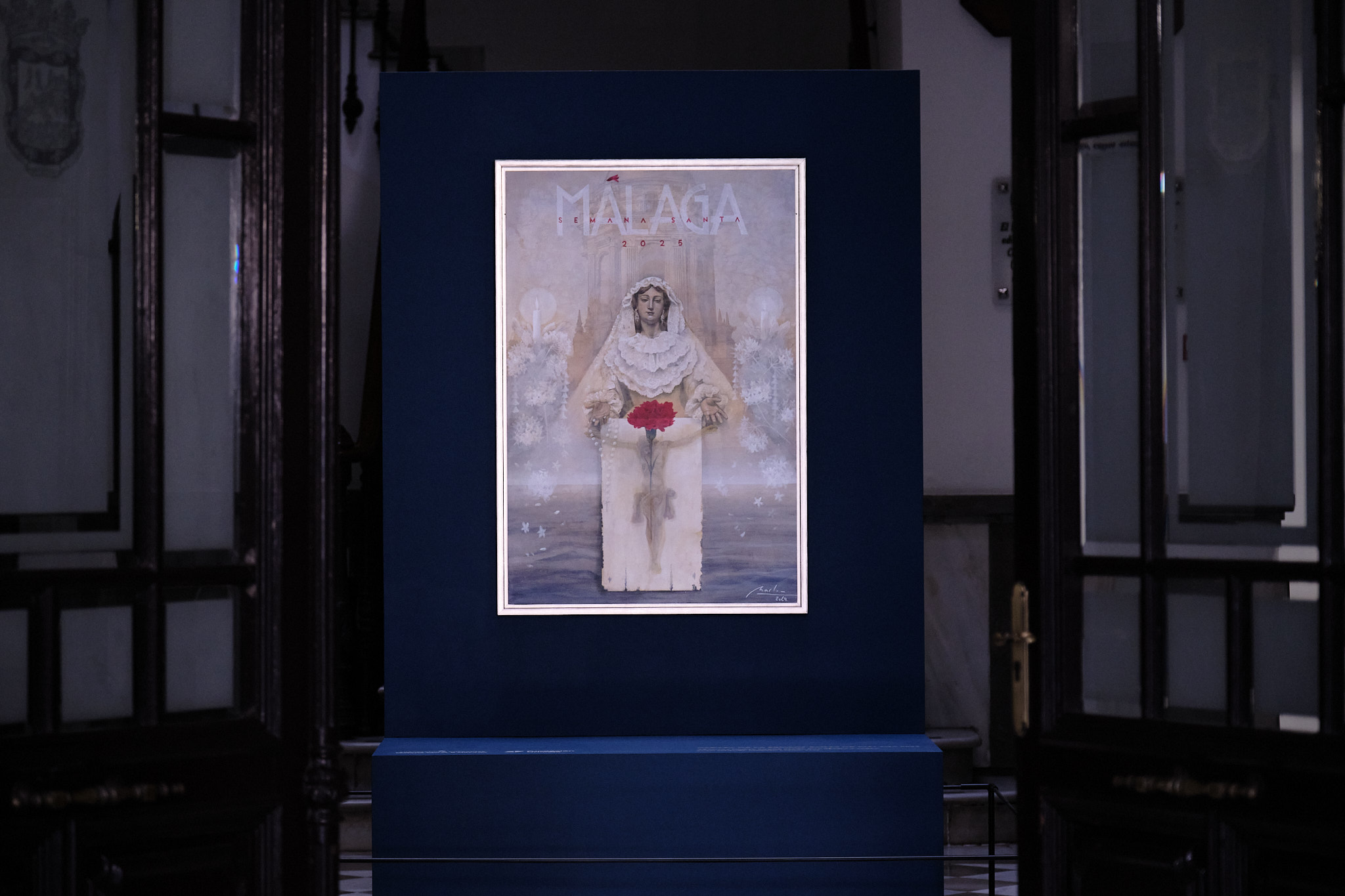 La obra del artista Juan Miguel Martín Mena (Cádiz, 1979), que fue presentada el pasado 9 de enero, está realizada en técnica mixta sobre papel de algodón encolado a una tabla de 80 x 120 centímetros y combina diversos materiales como café, sal, grafito, acuarela, acrílico y bolígrafo. En conjunto, el cartel emplea símbolos malagueños que invitan a reflexionar sobre la fe y la tradición de la Semana Santa. Es la segunda ocasión en la que la Agrupación de Cofradías expone el cartel original y lo hace con la colaboración del Ayuntamiento de Málaga, a través del Área de Cultura y Patrimonio Histórico, y con el patrocinio de Fundación Unicaja. El horario de visitas es de lunes a viernes de 10:00 a 13:00 horas y de 17:00 a 20:00 horas; los sábados y domingos, se podrá visitar de 10:00 a 13:00 horas.